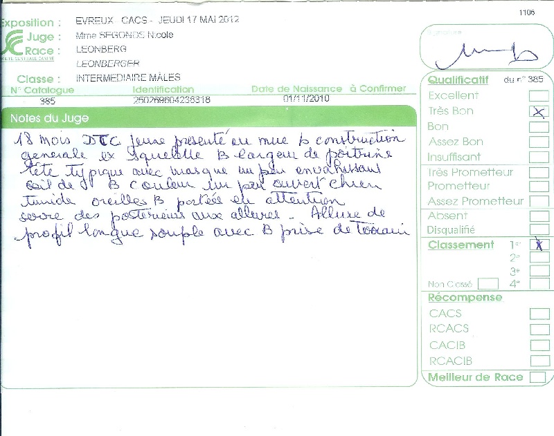 CH. Ugenie dite eugenie Des lions du duc de normandie