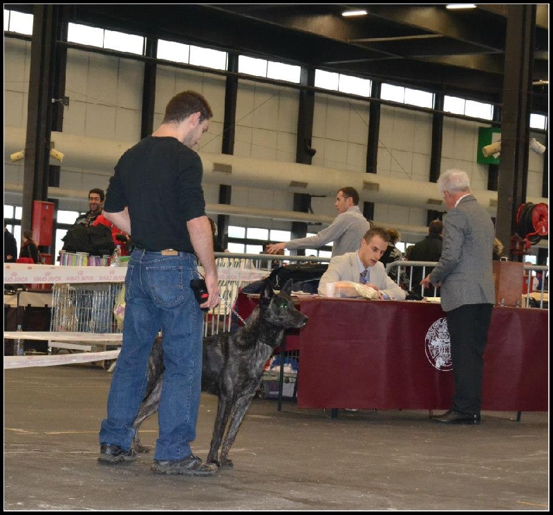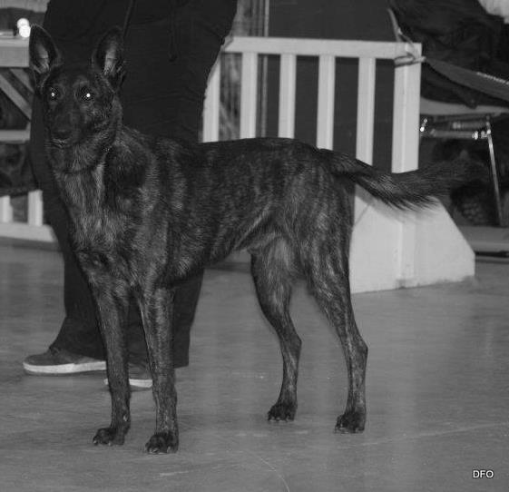 classe champion mâle : joli ensemble, bon gabarit bon format, DCC, jolie tête très expressive, excellente ossature en rapport avec l'ensemble du chien, excellents applombs et angulations, jolie fourrure bringée, fouet de bonne longueur bien implanté, excellentes allures et port de fouet.