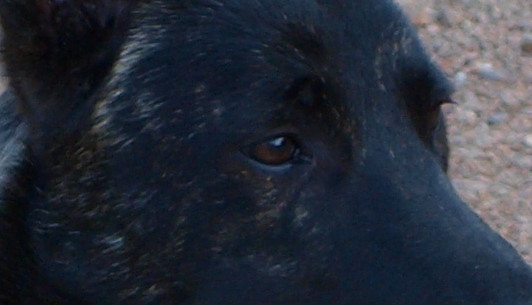 DCC, chanfrein très bon (un peu étroit) légèrement busqué, stop et crâne excellent, oeil excellent, encolure excellente, avant main un peu trop droit, ossature un peu légère, apploms arrières excellents (face et profil), sujet encore immature, applombs avant main excellent (de profil) et très bon (de face) allures régulières et typiques, caractère agréable.