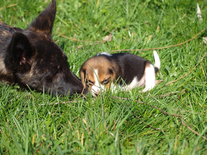 Joli bébé avec excellent caractère, très bonne ligne de dos, très bonne proportion générale pour son age, tres bonne ossature et applomb avant, très boonne angulation et applomb arrière, jolie tete expressive, oreilles bien placées et portées, bel oeil forme et couleur, belle bringure