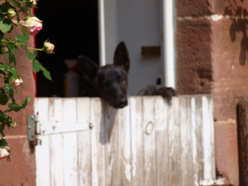 8 mois, bien typé, bonne construction, excellente fourrure, bonne bringeure, bonne tête expressive bien proportionnée, beau masque et oeil, oreille correcte un peu large à la base, excellente encolure & angulation AV et AR, légère faiblesse des poignets, décolle les coudes, bonne allure.
