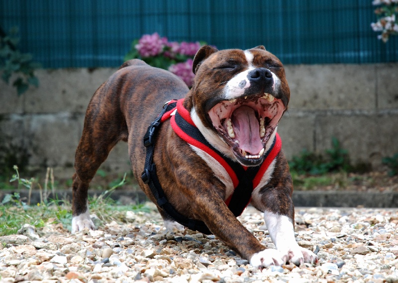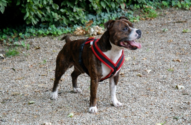 une piste sans prévenir ou provoquer un autre mâle qui l'ennuierait. Cliff est un joli stafford de 39cm pour 17kg.