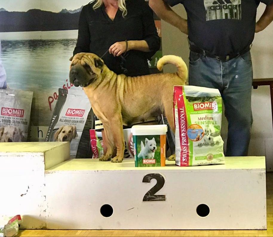 Féminine, puissante,excellent petits yeux foncés,exc ossature, bon volume museau,exc port queue, DCC, langue bleue,exc angulation avant pieds, exc allure, le garrot pourrait plonger d'avantage, angulation arrière un peu trop marquée, jolie tête, bon rapport crane museau, oreilles bien plaquées qui pourraient être portées plus hautes.Merci madame d'avoir appréciée ma miss