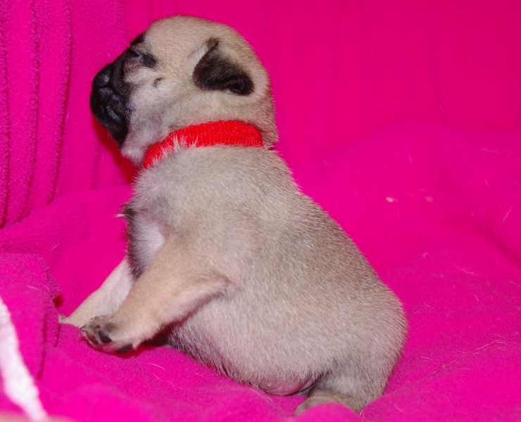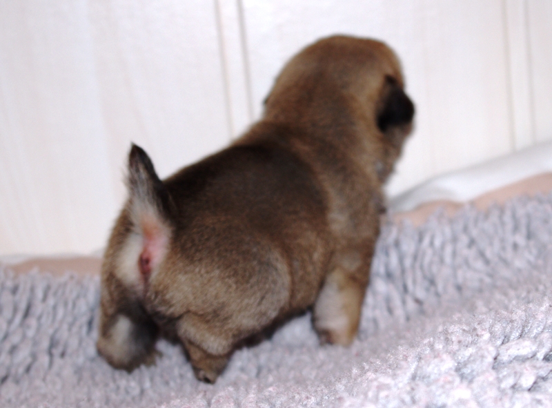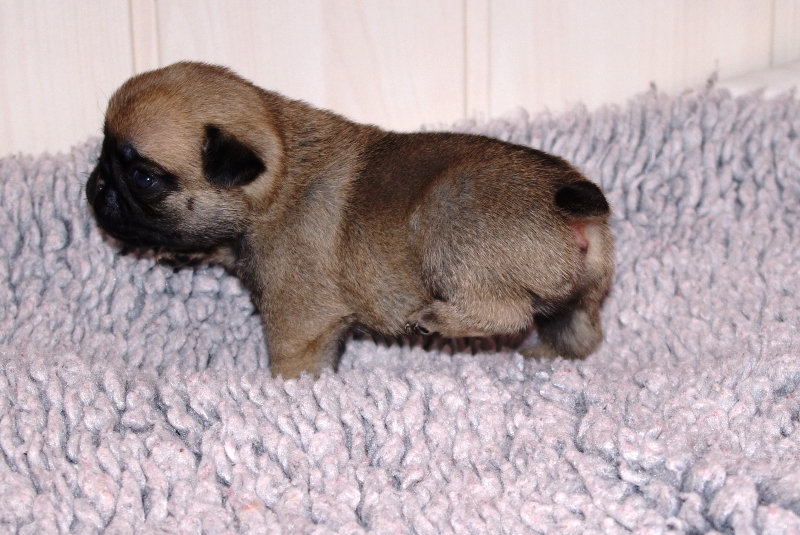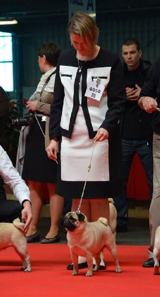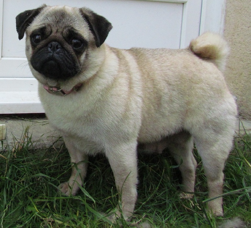 3 ans. Chienne très courte, excellente pigmentation et poils, tête typique, j'aimerais qu'elle ai une ligne de dos plus forte et une meilleure queue. Elle se déplace bien quand elle veut.Présentation par Pauline Binet (Élevage des Bouilles de Clown).