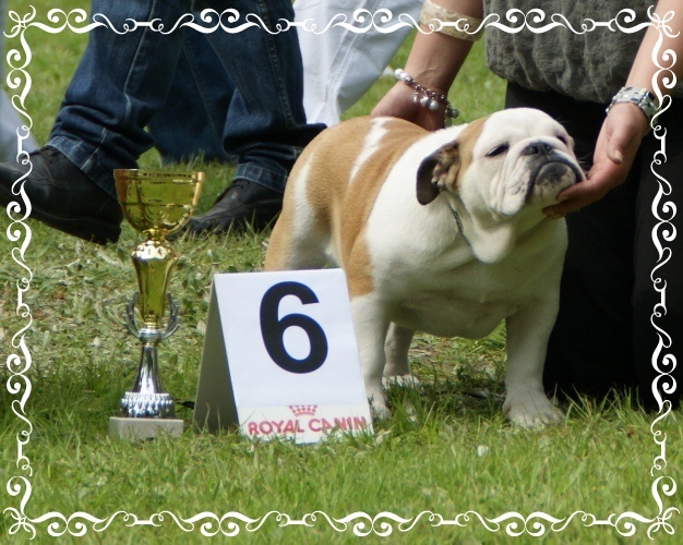 Fauve à panachure blanche .En excellent condition . chien compact . Très féminine .Tête avec une bonne expression typique. bonne rides . Bon cou.Yeux bien foncé.Oreilles en rose.Bonne courbure de la mandibule.Bonne ossature . bons aplombs. Epaules bien rapportées au corp. côtes bien rondes.Bonne ligne de dessus .Bon arrière mainBon piedsQueue droiteDémarche lourde et contrainte typiqueExcellente présentation . Chien calme et agréableJoli sujet qui a de l'avenir