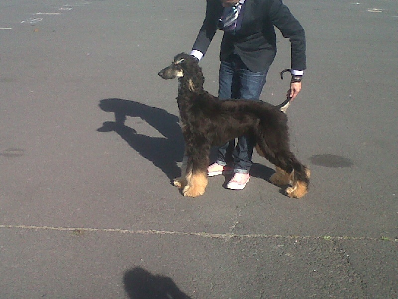 Très Jolie chienne avec une belle tete exprésssive ,bon dos,encolure et déssente de croupe ,se déplace avec brio et exellente présentation . CAC
