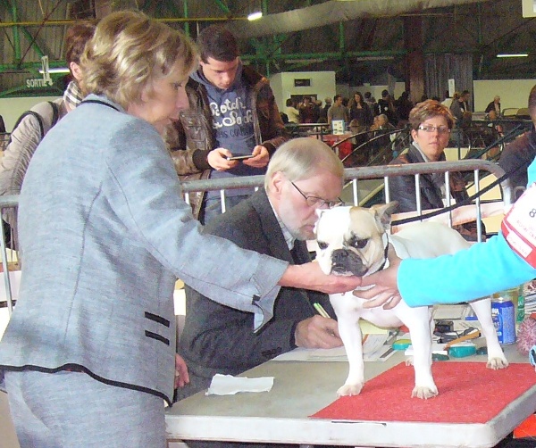 11.900 kg, tête conforme, menton bien marqué, exc.oreilles, TB construction, dos droit, implantation queue haute, exc.angulations + aplombs, TB queue, marche = beaucoup d'élegance