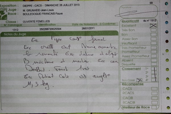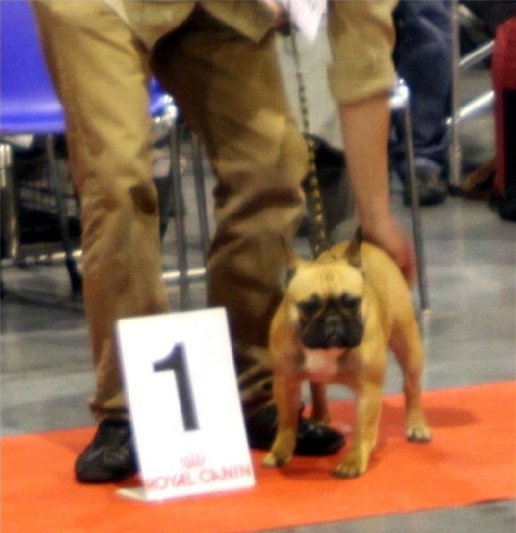 10Kg400EX craneEX oreillesEx oeilTruffe correcteRapport crane chanfrein correctEx menton,prognatismePoitrail serréCote correctPoitrine juvenil et en rapport avec son ageRoach back correctAngulation correctQueue courte mais presenteEx poilManque de substanceAlure correct et regulier