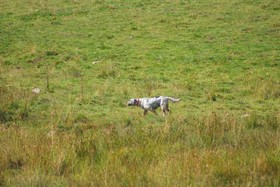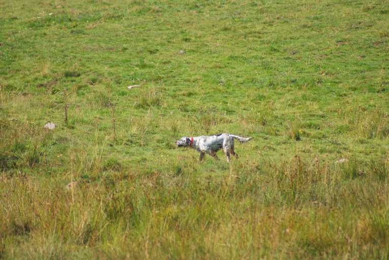 Bonne prise de terrain, bien exploré,s'assure un excellent point bien verrouillé. Coulé énergique et félin.La bécasse décolle S E F , relancée continue à explorer son terrain méthodiquement, toujours au contact.