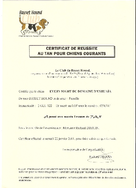 Chien Basset Hound Every night du domaine d'Ushuaia