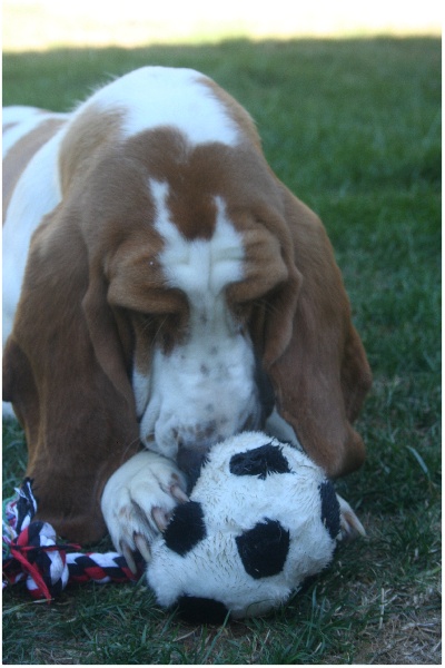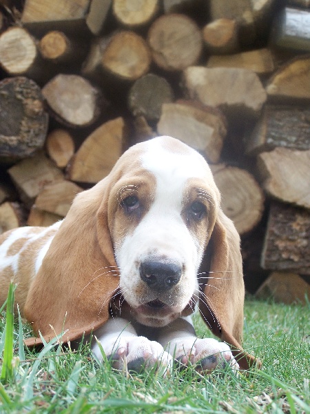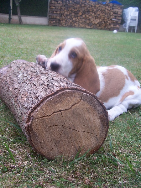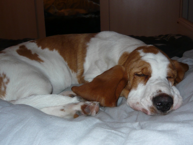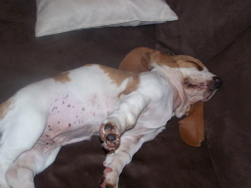 Dynamite notre première hound....Nous voulions un mâle tricolore mais nous avons craqué sur une petite femelle bicolore si douce.