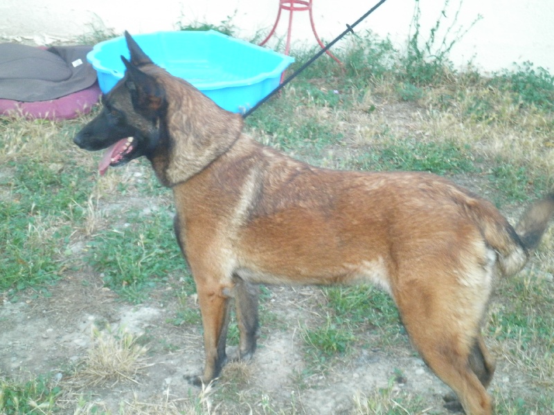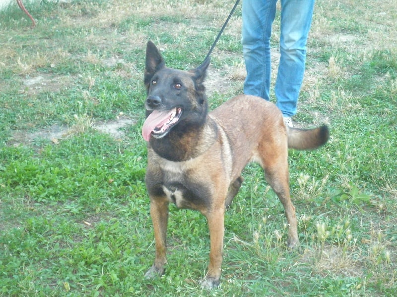 gouache est une très belle lice de beau format 62 cm au garrot environ 30 kg de couleur rouge dans toute la robe et très noire sur toute la partie tète. femelle hyper sociable très sportive gros mordant et bonne vitesse voulant toujours faire plaisir dans le travail.
