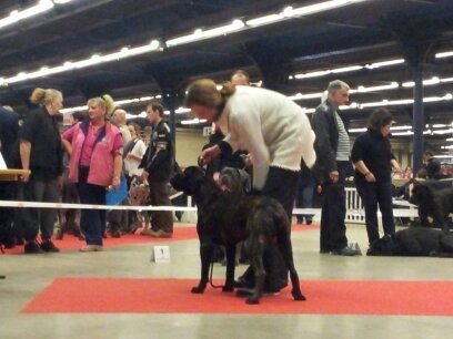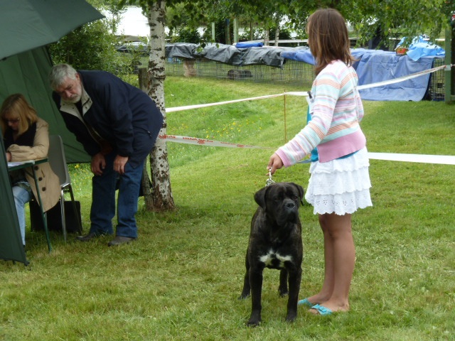 Gigi a été présenté à l'expo et à la confirmation par ma nièce de 11 ans, un jeune chien et une jeune demoiselle : pas facile, surtout sous la pluie.L'Excellent n'a pas été accordé car le chien a eu un mouvement de recul face au juge (qui n'a pas apprécié) mais le "couple" s'en est très bien sorti, merci et bravo à Mailis pour sa 1ère présentation avec le Gigi