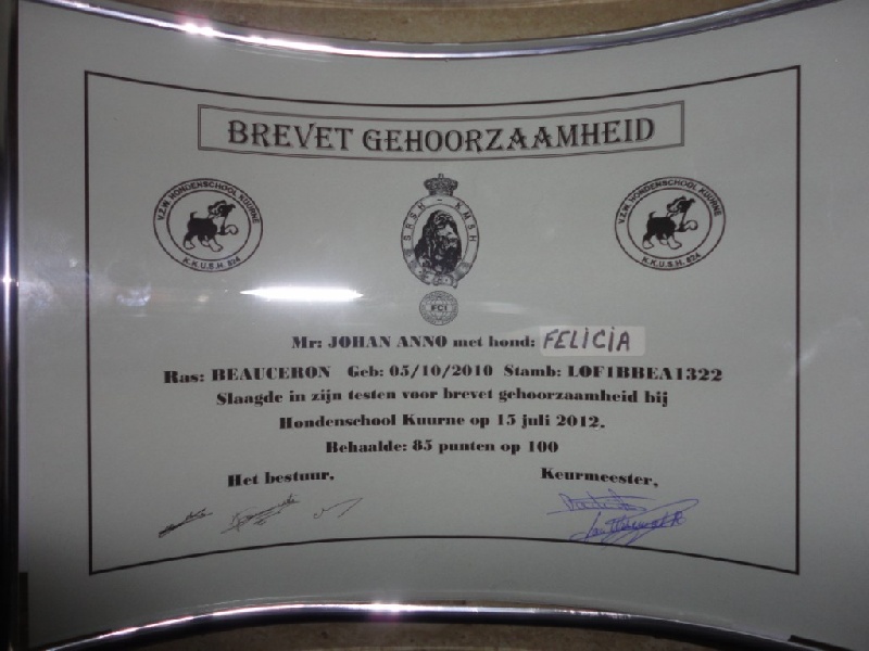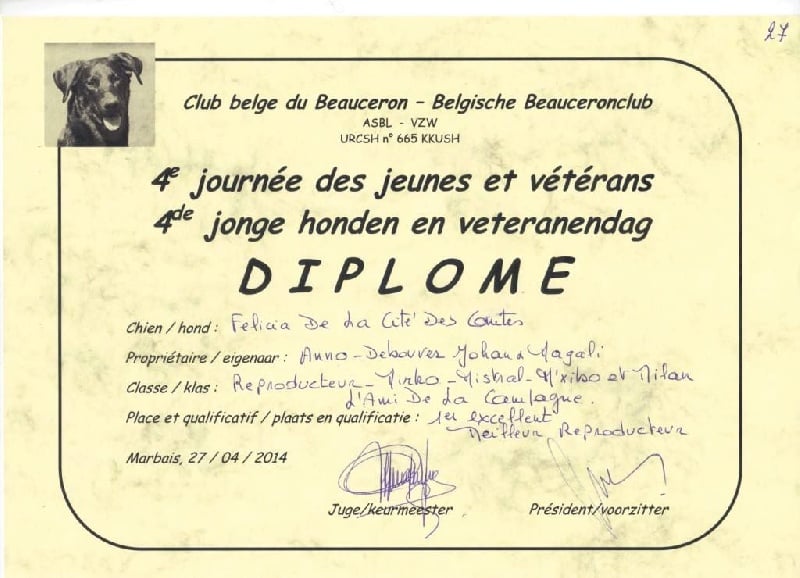 Meilleur Chien de la Journée Beauceronne Noeux-les-Mines 2011.