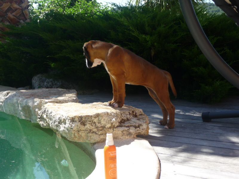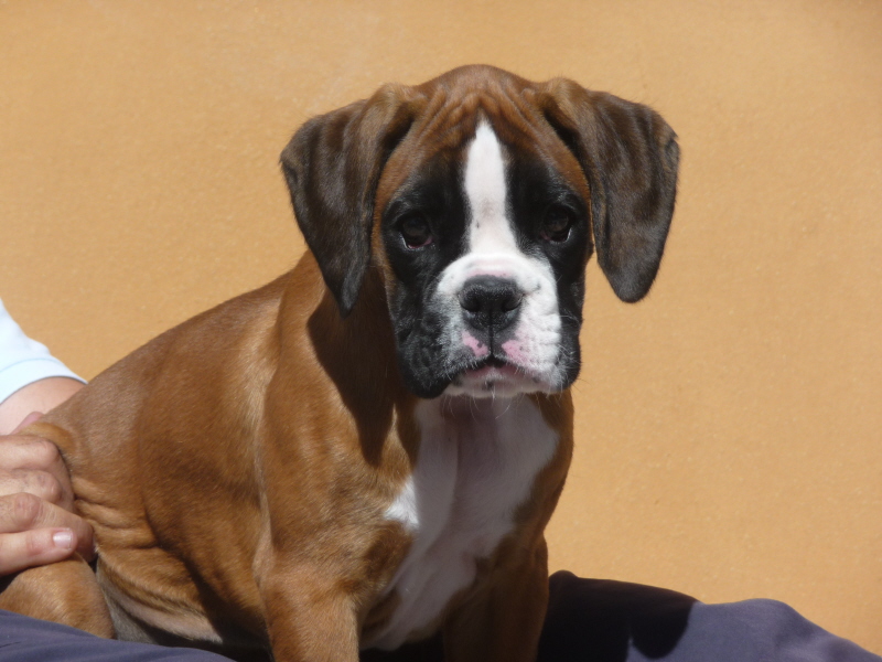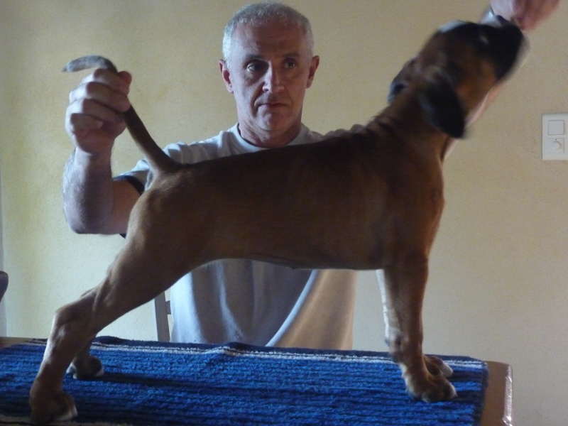 3 mois fauve rouge marquée en blancex type de tête avec ex rapport crane museauex dention pour son âgeex yeux forme et couleurconstruction carrée avec forte ossaturesortie d'encolure éléganteex angulations AV et ARRex croupe et port de queueallure fonctionnelle pour son âge