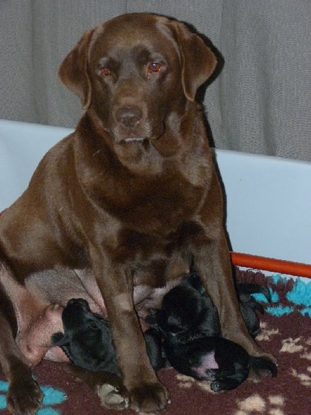 Il s'agit de la 4ème génération de labradors chocolats nés à la maison.