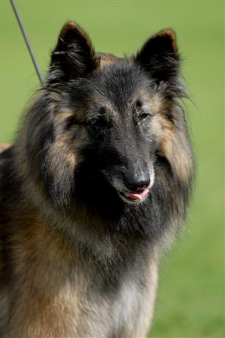 DCC, tête medioligne, bons yeux, stop minimum, ciselure correcte, bonne pigmentation, bien masquée, bonne construction, taille moyenne, bonne poitrine, bonnes angulations, bonne attitude, fauve charbonnée.