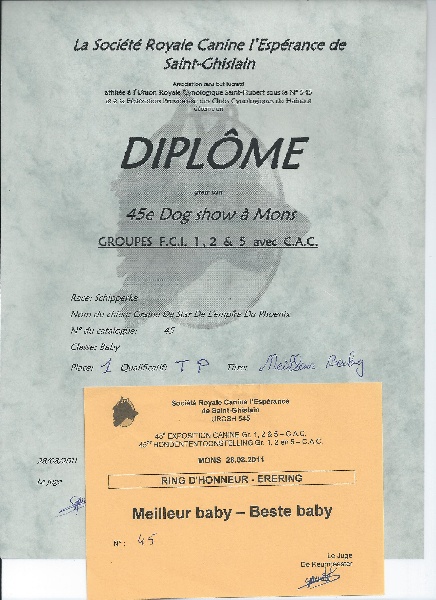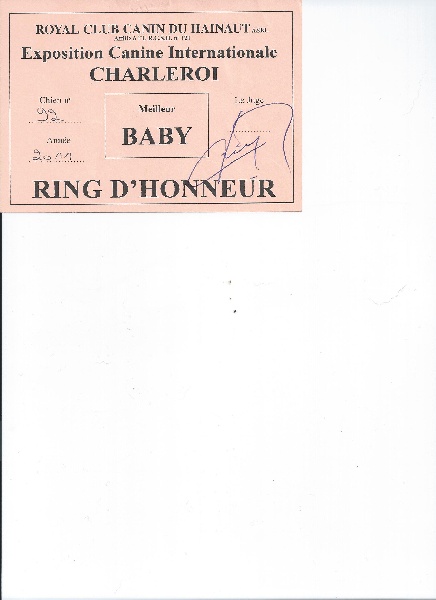 MEILLEUR DE RACE POUR SA PREMIERE CLASSE OUVERTE EN BELGIQUE EN PLUS ET AVEC D AUTRES CHIENS!COMMENT NE PAS ETRE FIERE