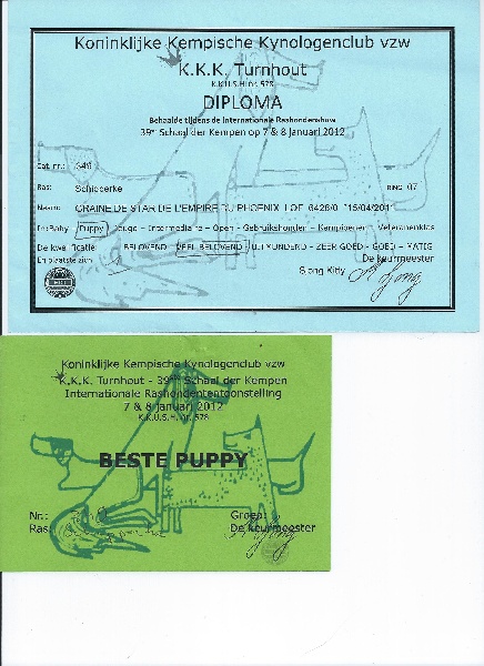 fini 2 éme femelle de la race, derriére la Championne en battant la classe ouverte à a peine 18 mois.MEILLEUR COUPLE SCHIPPERKE AVECFAIS PAS CI FAIS PAS CA DE L'EMPIRE DU PHOENIX