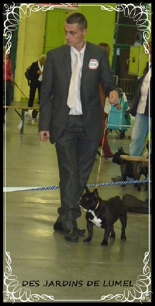 10.5 kg 22 mois tête courte,chanfrein un peu long,prognatisme correct,attache des oreilles un peu basse,excellent poitrail,excellent avant main,excellent ligne du dessus,rein court,arriere droite,cotes en tonneau,excellent fouet,excellent poil,demarche un peu desordonné,excellente presentation