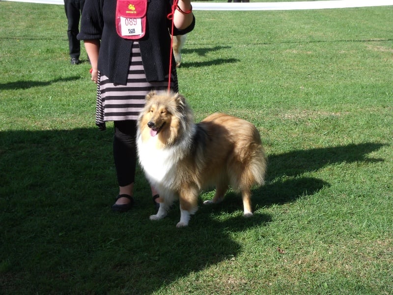 12 mois DCC Belle expression yeux bien foncésEncolure B sortie, à tendance à plonger de l'avant. Fouet trop court.Exc oosature Apb avant réguliersExc angulation, serre les post en A/RMvt régulier, pourrait être plus ample.