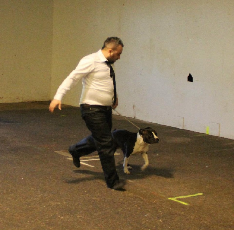 jolie chienne , belle proportions , exc tête œil , tb oreille dcc , exc ligne de dessus et attache de queue , exc poitrine exc antérieur et postérieur et pieds exc mouvement avant et arrière , belle dynamique