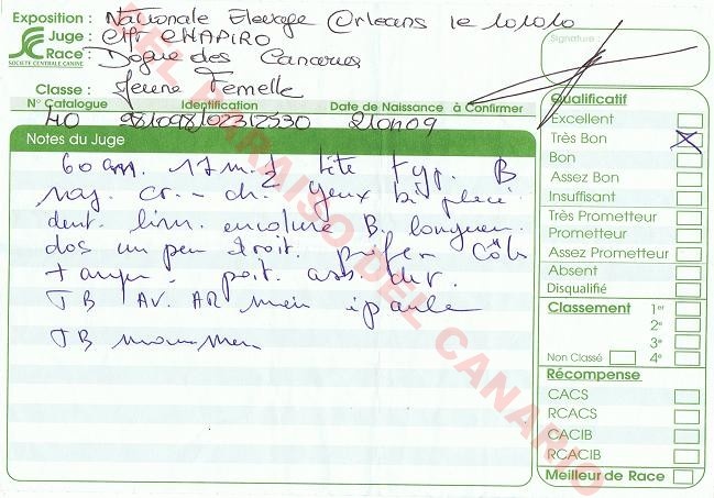 Manifestion : CACS-CACIB - Juge : Mme Thevenon-Wulleman Josiane