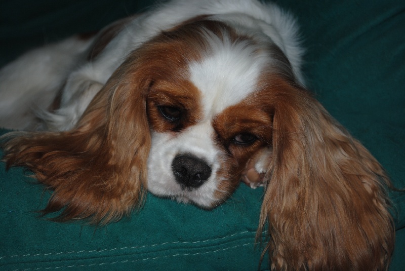 Guapa est une chienne calme, posée, qui adore faire de longues siestes sur le canapé. Elle adore qu'on la toilette et comme tout cavalier king charles qui se respecte, elle est très très caline.