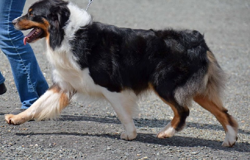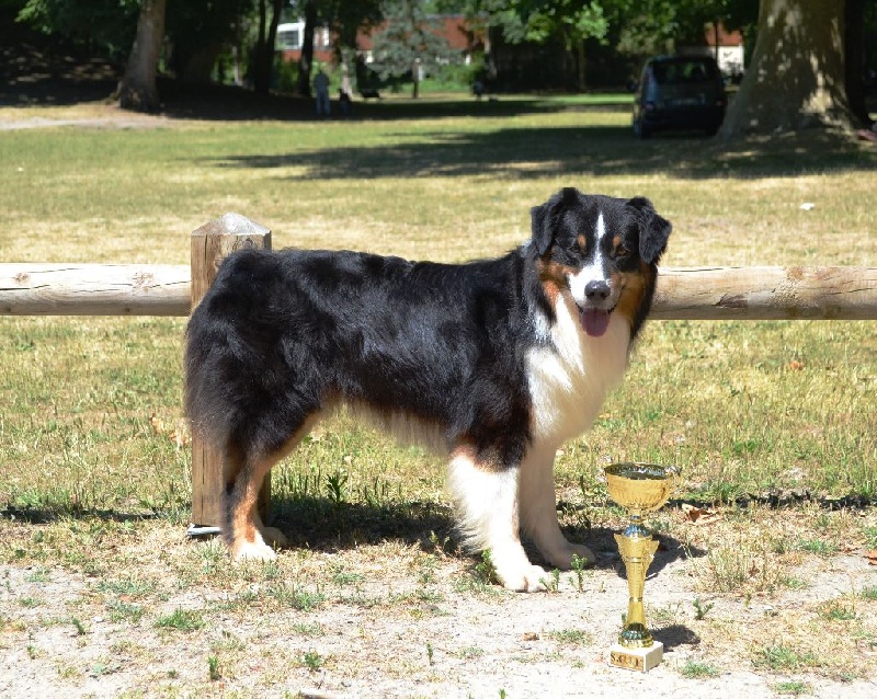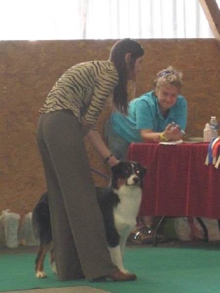 Un peu plus de virilité souhaitée dans l'aspect.Trés bonne ossature.Exc proportion de tête.Trés bon stop.Oreilles correctes.Denture en ciseaux.TB ligne de dessus et de dessous.Membres antérieurs et postérieurs un peu graciles.Trés bon mouvement.