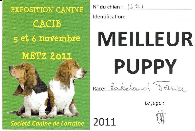 Exposition Internationale à METZ le 5 Novembre 2011 Gefferson Maiden se classe 1er Trés Prometteur en classe PUPPY et MEILLEUR PUPPY.