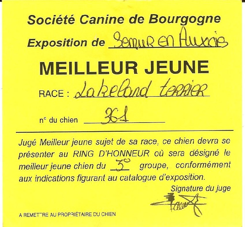 - 1er Excellent classe Jeune; MEILLEUR JEUNE de l