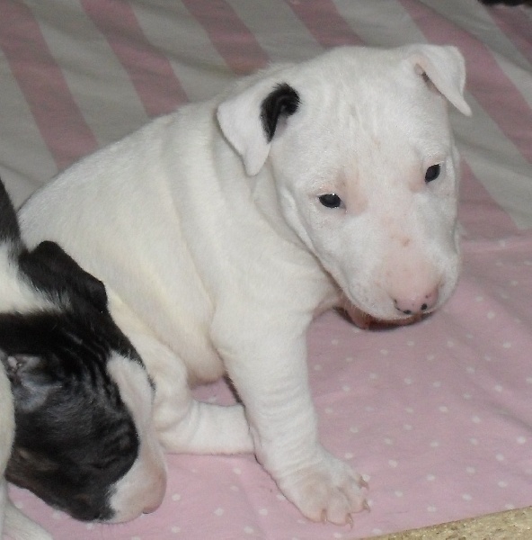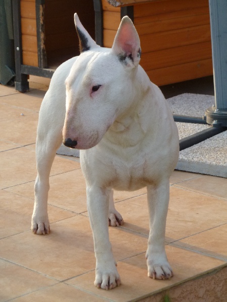 DCC, tête correcte, jolie expression, oreilles en place, exc poitrine, exc aplombs AV et AR, ligne de dos correcte, fouet bien placé.