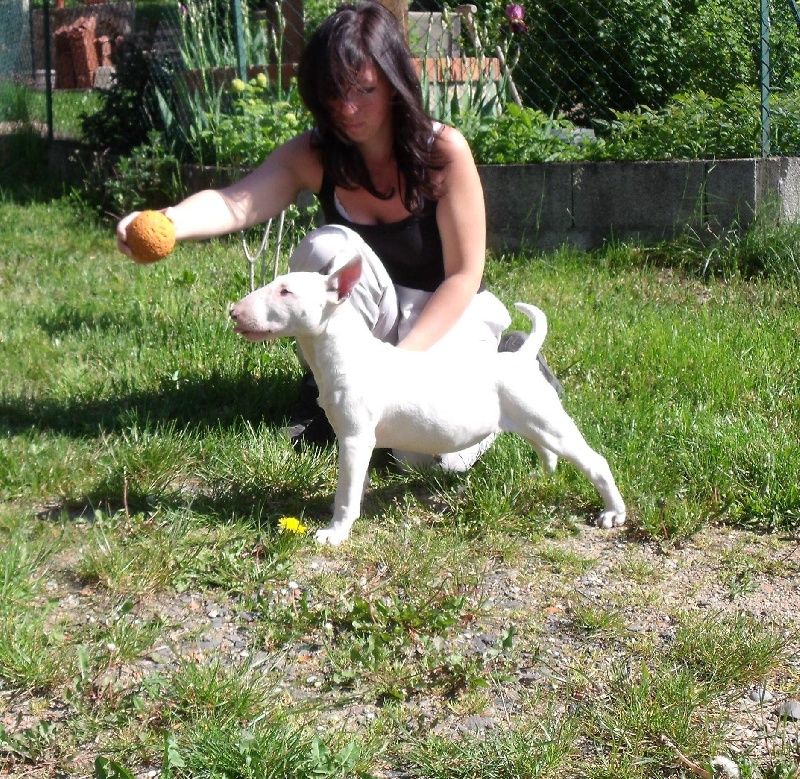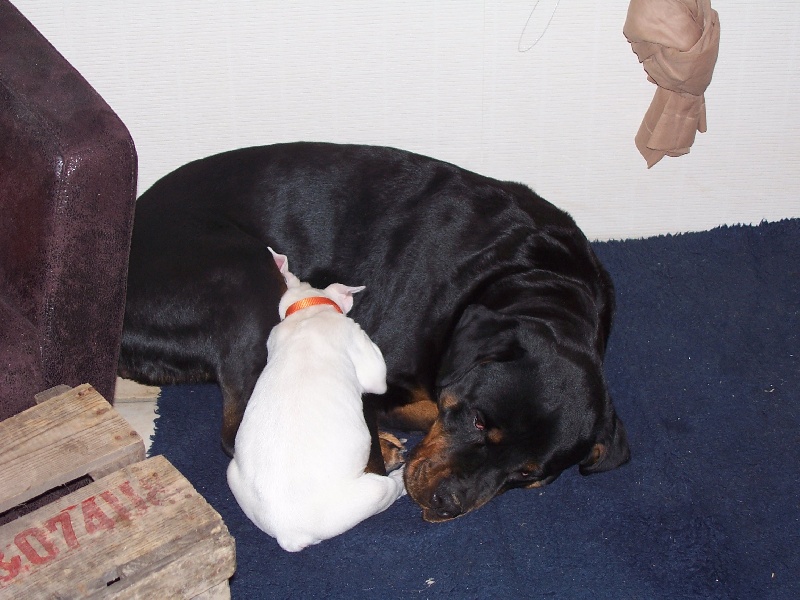 Très belle chienne, Bien dans la tête, T bon chanfrein, un exc denture, pigmentation truffe pas terminée, déjà bon poitrail, exc aplombs + pieds, mouvement typique de la race avec port de fouet.