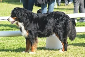 2 ANS 1/2 Sujet de bonne taille ossature et substance correcte.Tête typique en tout point conforme au standard.Dos légèrement cédant, poitrail bien éclaté.Excellente positions statiquesExcellent mouvements avec de bonnes poussées de l'arrière main.Poil légèrement ondulé, répartition des couleurs conforme au standard.