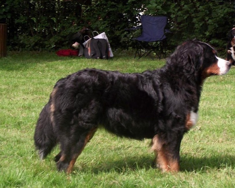 Excellent sujet bien dans le type et la taille.Excellente tête + yeux + dentureExcellente encolure + texture + couleurs.Queue bien placée + bien portée.Excellente ligne de dessus.Mouvement correct.