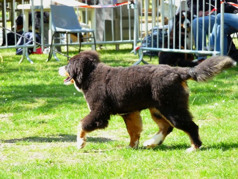 20 Mois. Jolie tête féminine. DCC. Ossature correcte EXC oeil, forme et couleur. TB angulations ARR j'aimerais une ligne de dos + ferme en statique et aux allure. Fouet trop court, mais bien portée aux allures. TB mouvement typique de la race.
