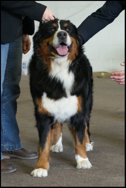 DCC. TB proportion de tête crâne correcte. Exc oeil forme et couleur, TB oreilles implantées et portées.TB marquageTB proportions Exc dos assez tendu croupe correcte.Exc poitrine, TB aplombs B angulationsExc mouvement.