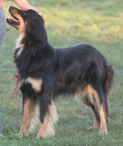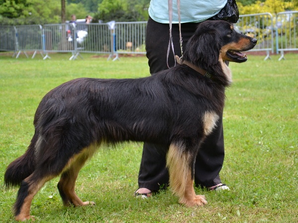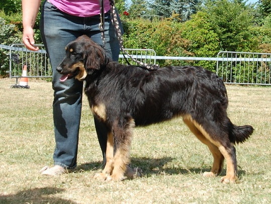 Nf. DCC. Belle couleur. Bons feux. Bonne proportion en tête. Parallélisme OK.Ex oeil et oreilles. Construction bien proportionnée. Belle croupe. Bonnesangulations. Ex ossature. Légèrement panard derrière. Déjà de belles allures.Fouet un peu enroulé