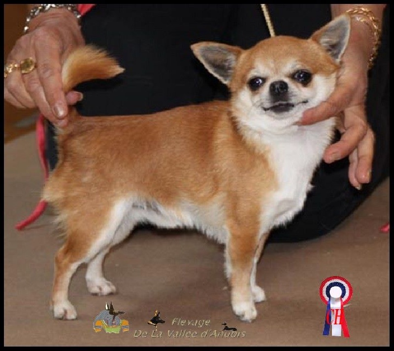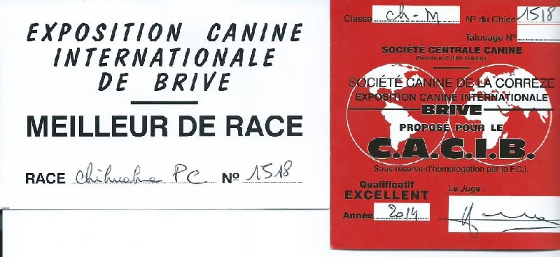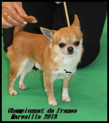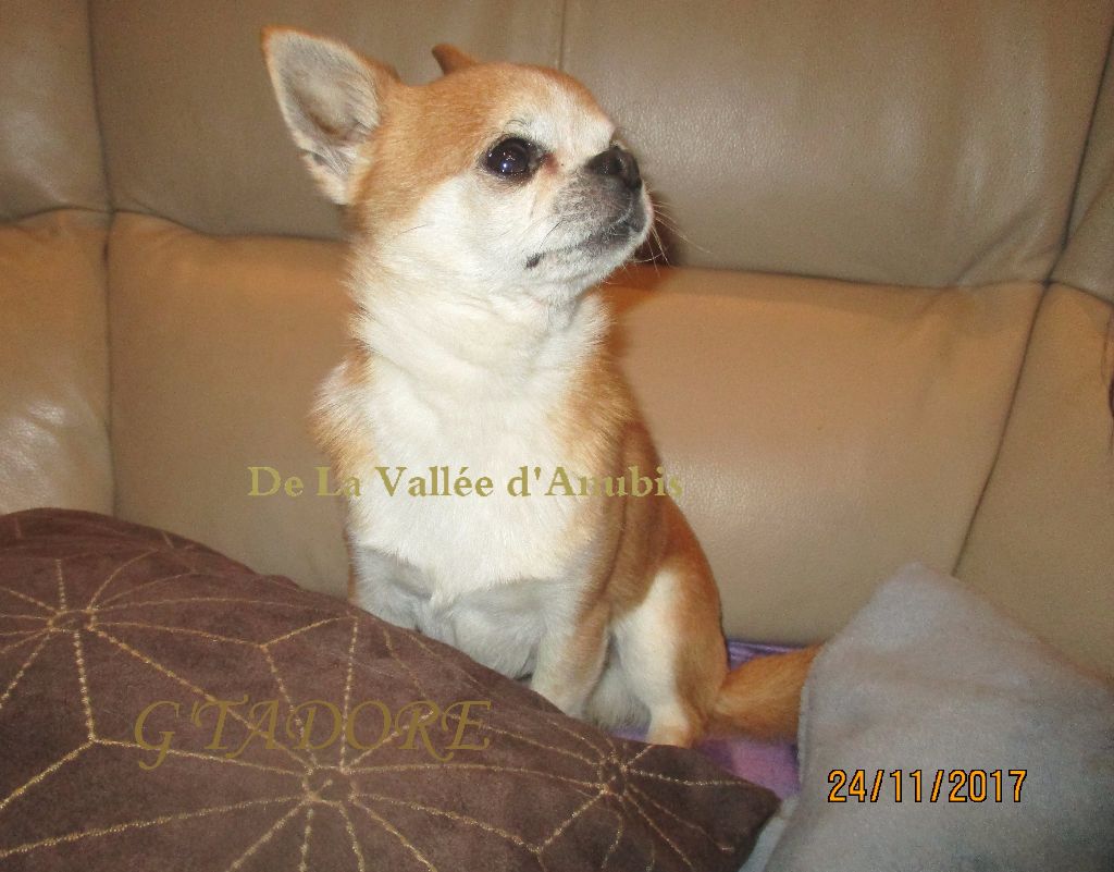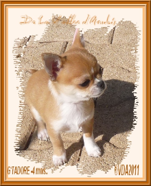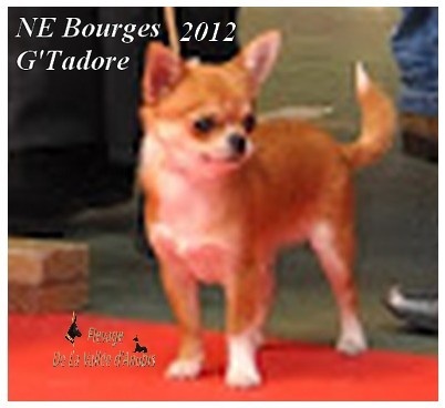 - G'Tadore est né à l'élevage, d'un mariage Inter-variété accordé par Mr Daniel Arnoult, Président du CCCE en date du 21/11/2010.......poids 1.900 kgs - MEILLEUR CHAMPION PC de la Nationale d'Elevage du 20 Fevrier 2015- MEILLEUR Chihuahua Poil court ds le classement de Vos chiens magazine 2014