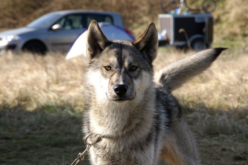 Geronimo dit Achak est un beau mâle de taille moyenne. Il peut travailler en toutes positions et mm en sports monochiens comme le canicross et canivtt. Il est plutot solitaire. Il ne s'entend pas trop avec les autres males de la meute, il n'aime que le femelles ! A l'exterieur du chenil, il ne sera pas bagarreur mais il ne faut pas le chercher. Il est très calme à la stake.