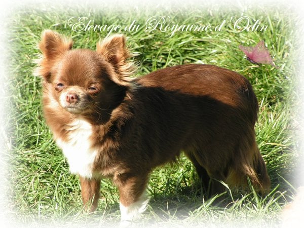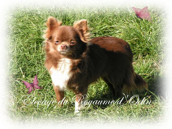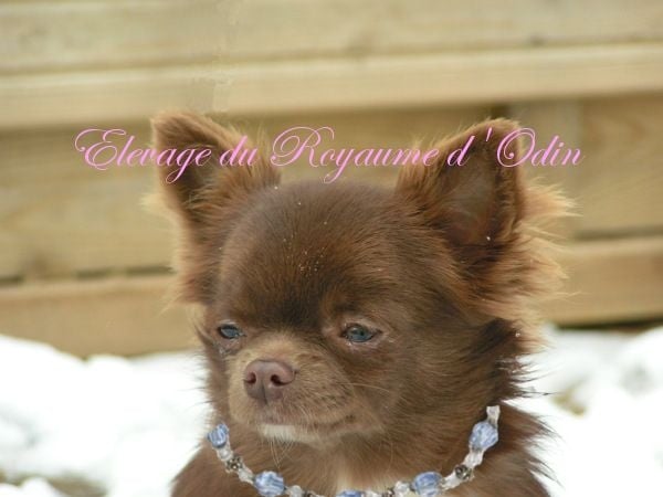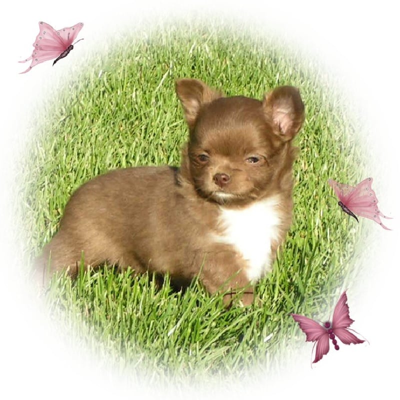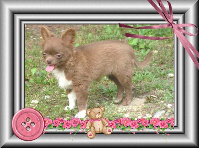 Gitana est une petite puce chocolat poil long très typée avec un tout petit nez. Elle est très affectueuse. Elle pèse 2 Kg.