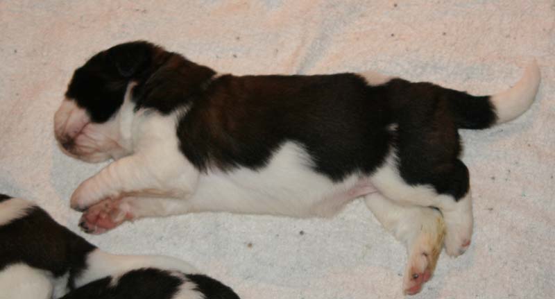 9 mois / 76 cmGrande chienne, excellentes proportions, excellente expression en tête, féminine.Exc. couleur d'oeilExc. denture en ciseauExc; articulationExc. aplomb et angulationDémarche aisée.