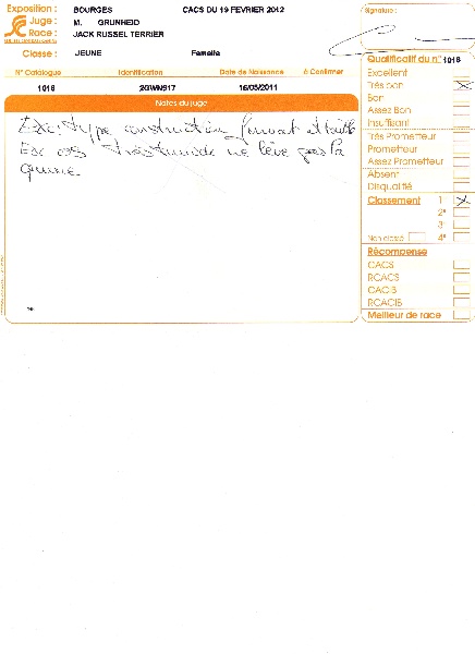 - Qualificatif Jeune : 1ère Très Bon