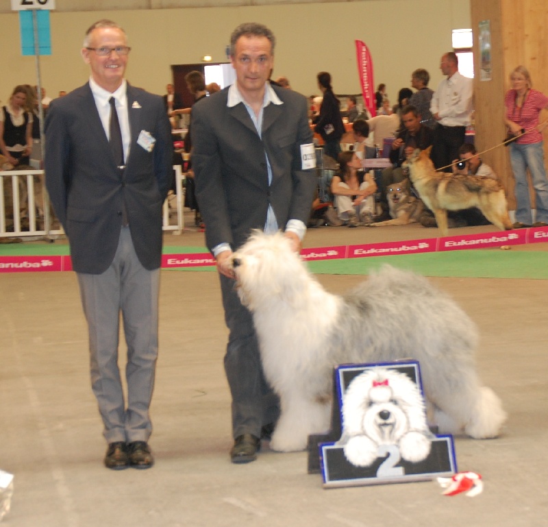 19 mois. Femelle compacte, puissante et équlibrée. Tête bien faite et féminine. L'oeil est fonçé; Dentition en ciseau. Excellents, encolure, épaules, bascule, et arrière main. Excellents aplombs, poitrine puissante. Excellentes texture de poils et couleur. Mouvements amples et efficaces.