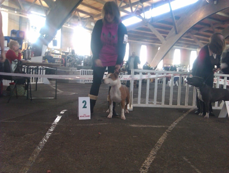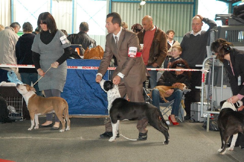 DCC, très jolie femelle mais présentée un peu enrobée, contruite en lice, excellent angulation et applombs, membres bien parallèles, dessus solide, belle encolure puissante, énorme poitrine et poitrail, très jolie tête, bel oeil foncé, excellente babines et pigmentation, bien parallèle a l'avant et serre a l'arrière, marche bien