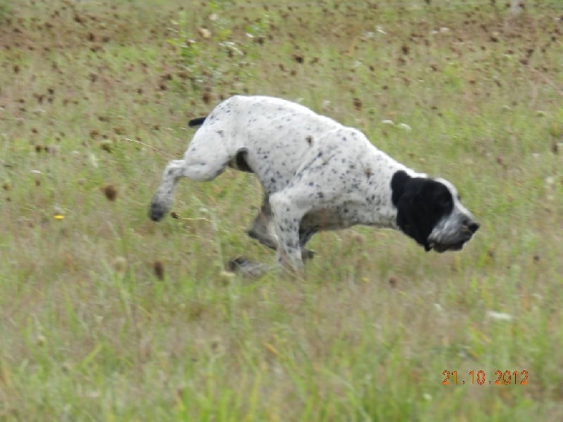 Gahia est une chienne de chasse très passionnée, arrêt très ferme, quête, ténacité, nez.