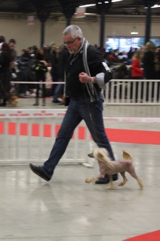 Très jolie tête - Exc forme de crâne - Bonne attache d'oreilles - Jolie forme d'yeux et couleur - Exc pigmentation / épaule / AV main - bonne poitrine - Exc ligne de dos / attache de queue / Exc angulations - Exc démarche - Bonne présentation