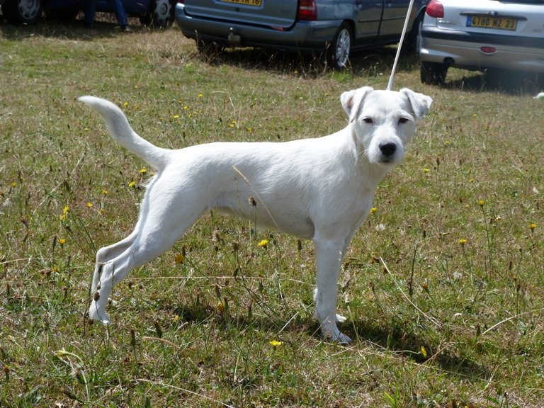 Taille 34 poitrine 42. Tb tête, belles proportions de Parson. Oreilles bien portées. Œil de bonne forme. Attache de fouet un peu basse. TB encolure et ligne de dessus. TB arrière main. épaule un peu étroite. Aplombs corrects. Se déplace bien.