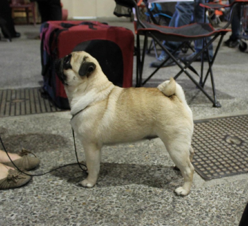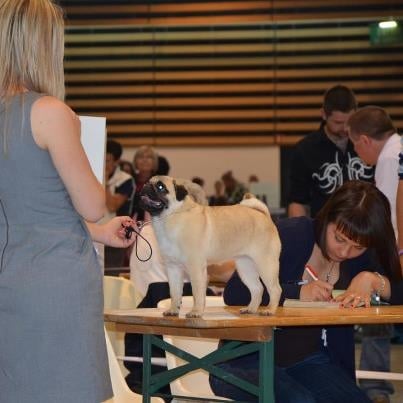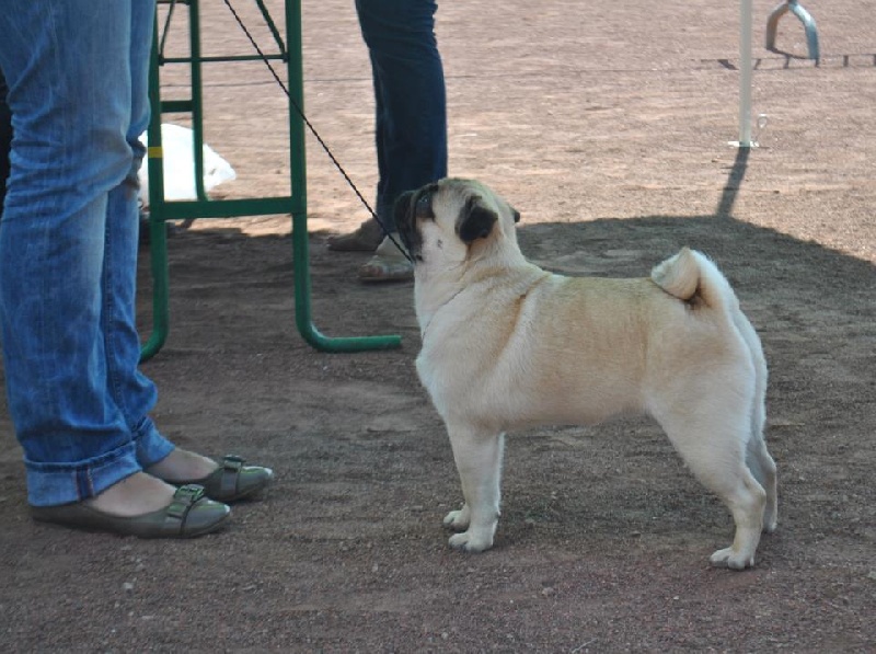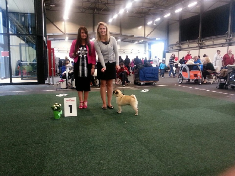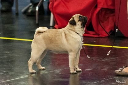 7 mois et demi, très jolie tête, oreilles bien attachées, exc. yeux, exc. museau, narines bien ouvertes, exc. encolure, queue bien atttachée avec double boucle, exc. angulations AV/AR, thorax bien développé, bien ramassée, petits pieds solides, exc. peau et exc. manteau. Marche très bien.Prometteuse sur les rings!