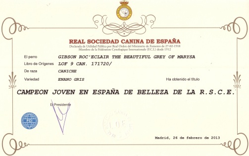 - Meilleur de Race Meilleur Caniche Nain gris Championnat de France 2013